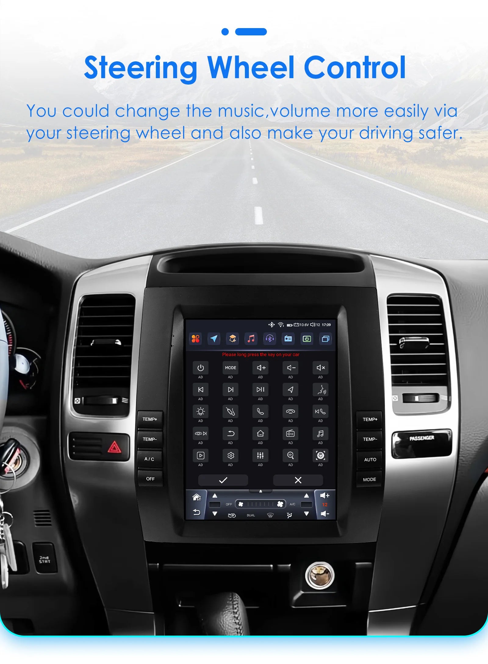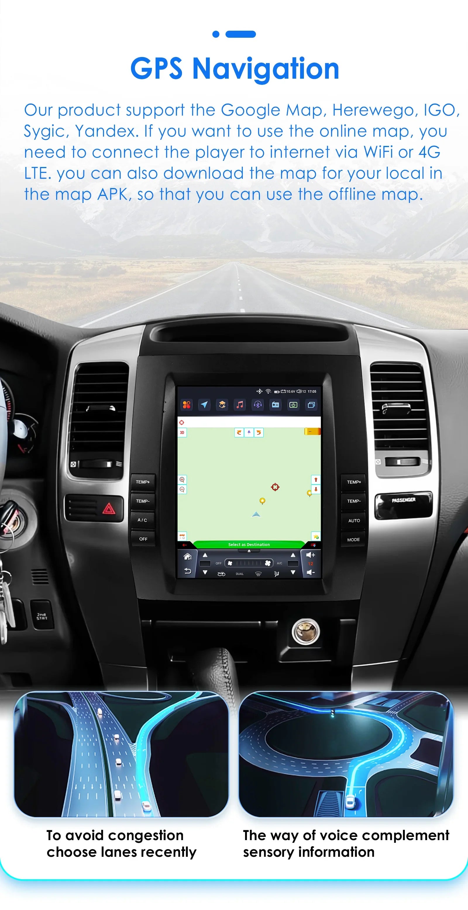 - Stay connected on the road with optional 4G/3G, Wi‑Fi, mirror link, Bluetooth hands-free calling, DSP (optional), and split-screen multitasking for maps, messages, and music.