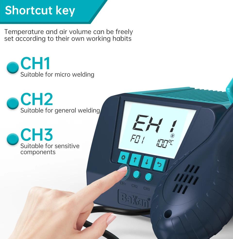 Tackle meticulous IC removal with precision using the BK880 Hot Air Rework Station—your 550W soldering dryer for fast, stable hot-air rework.