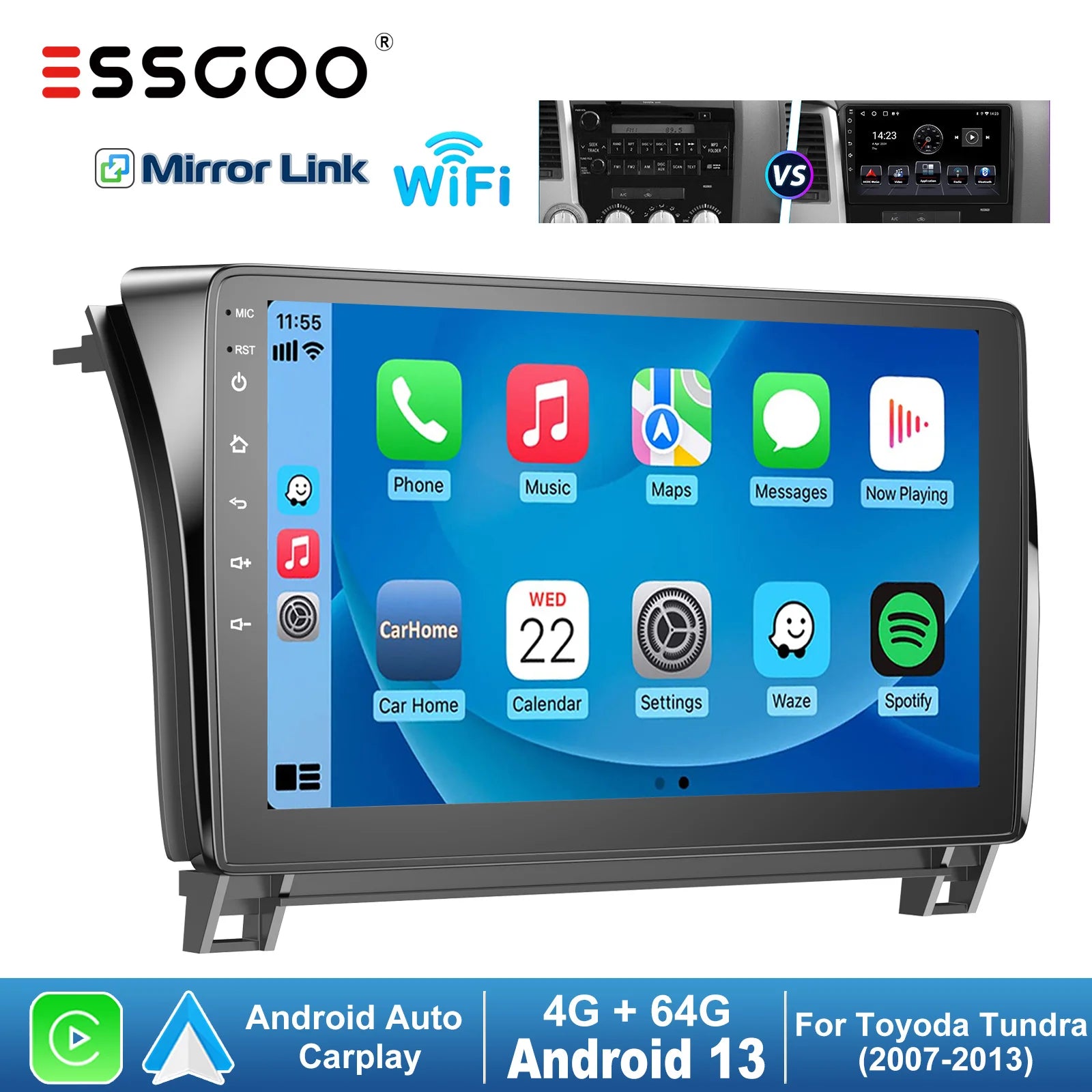 ESSGOO Car Stereo for Toyota Tundra Sequoia Android Auto CarPlay