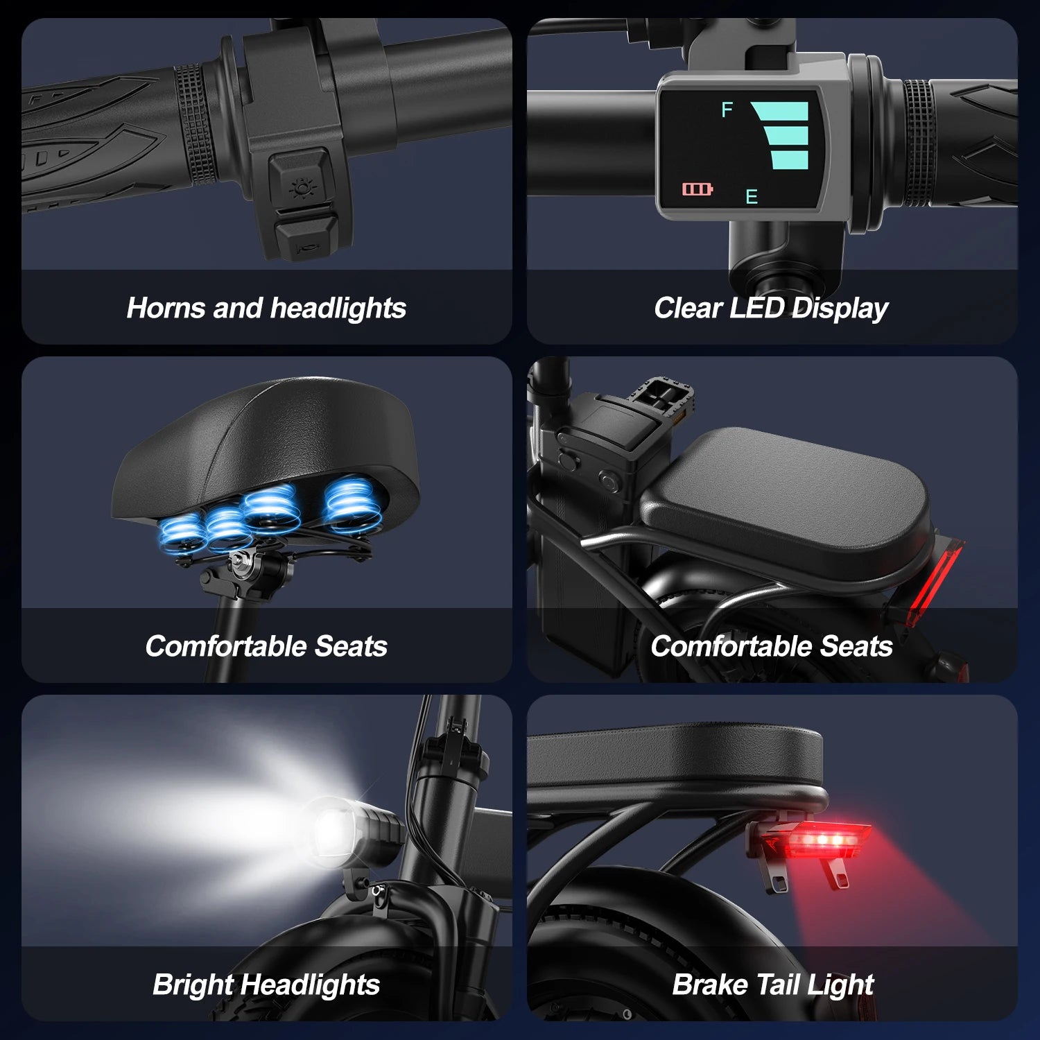 - Comfort and safety: front suspension, 14-inch tubeless tires, and disc brakes provide confident control on urban roads and through light rain.
