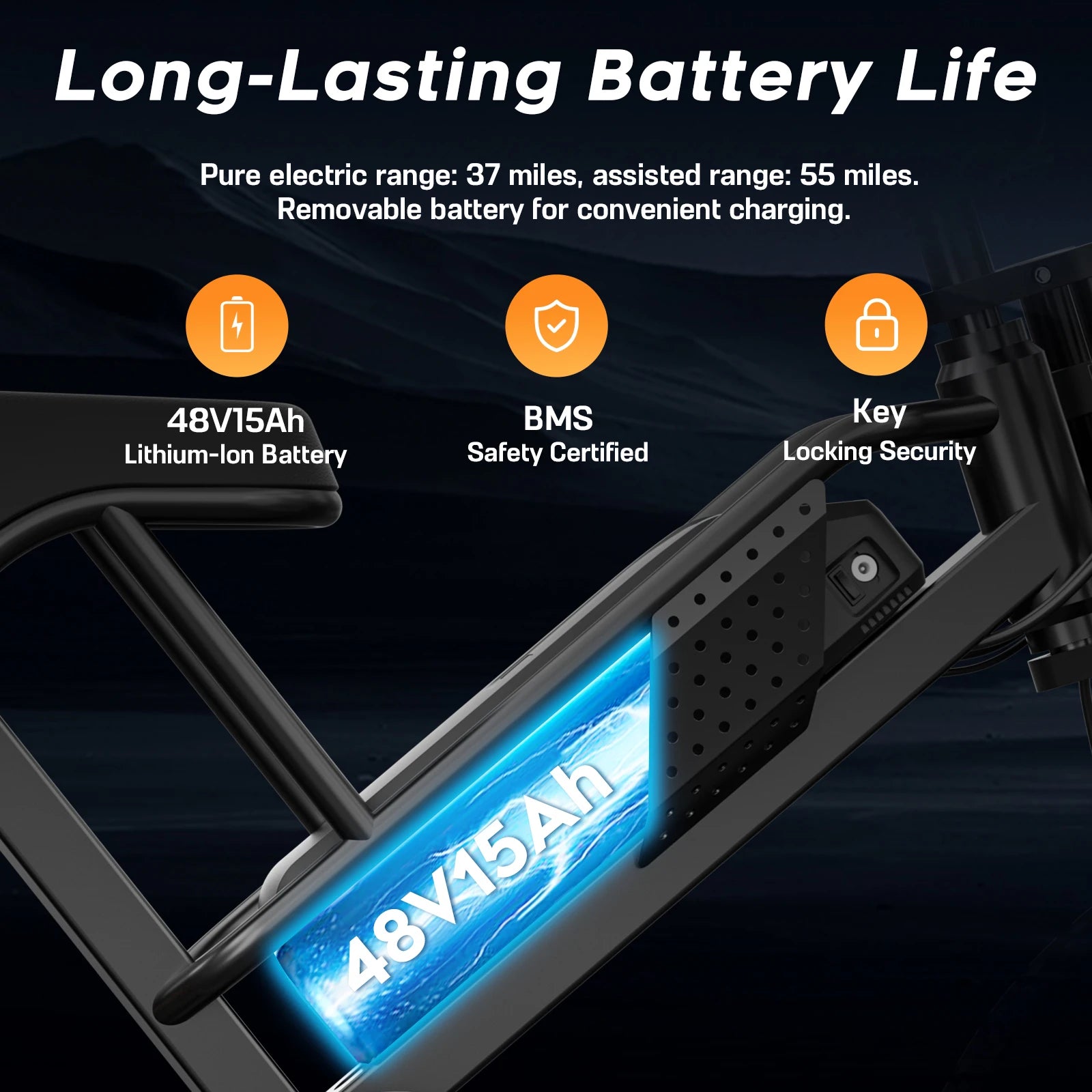 - Power, range, and convenience: a 48V 15Ah (720Wh) removable battery drives a 750W motor for up to 37 miles in Pure Electric or 55 miles with Assist; 90% pre-assembled, rear cargo rack, and VIP after‑sales support.